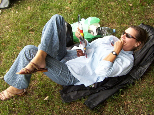 | Hiding behind a copy of El Mundo Medlar Valenciano, Ange does her best to keep a straight face. |