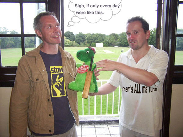 Gaf's incredible 45, his highest score in test cricket to date by some way, is acknowledged by an ancient and, some would say, a very embarrasing ritual. | ||