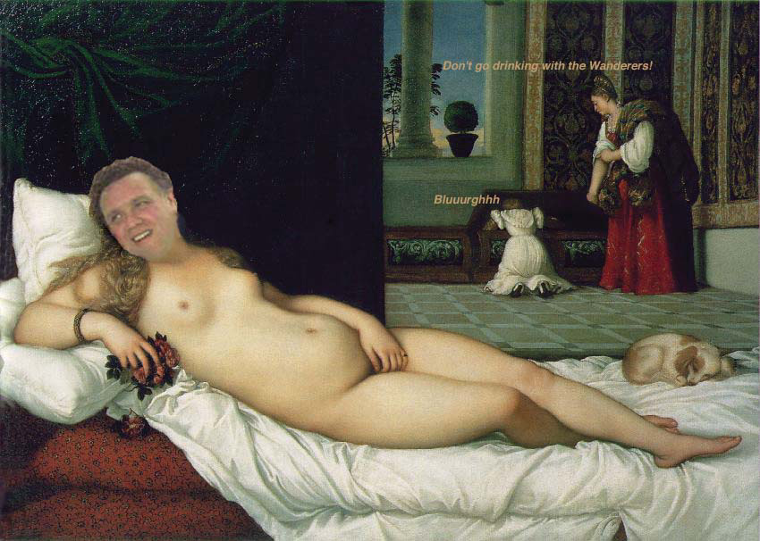 | The great Renaissance painter Titian was well known for his love of cricket, and was famously inspired by the image of the Chairman seen on the Goodlength XI photo page to create his greatest masterpiece, the 'Venus Di Kelly' currently on loan to the Museo Del Sporto Antiquo in Buonoestente. |