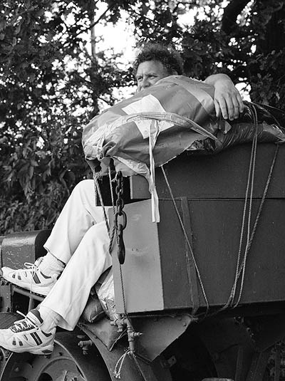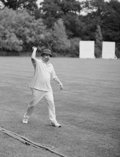 Measuring a full 2 foot in height, Mattel's fully articulated "Captain Wuff" Action Man figure (set here to "bowling mode") is by a long way the top-selling childrens' cricket toy. The patent "puffing cheeks" are inflated by a discreet pump. |